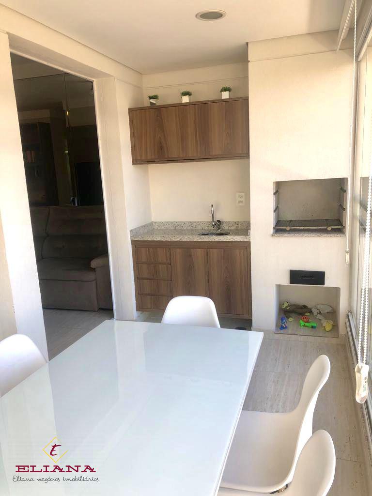 Apartamento a venda, com 65 metros, 2 dormitórios sendo 1 suite, varanda gourmet com churrasqueira e fechamento em vidro, sala dois ambientes com escritório, banheiro social, cozinha e área de serviço. Armários planejados em todos os cômodos. 1 vaga de garagem.