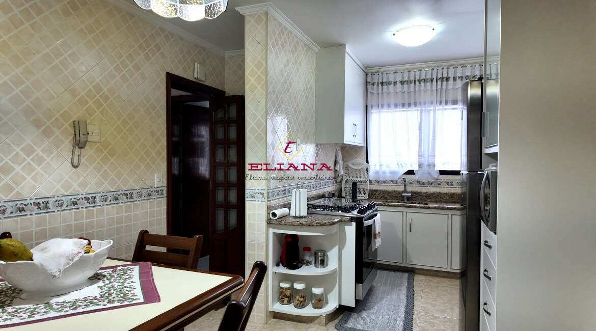 Apartamento com 122 metros, andar alto e de frente, distribuído em 3 dormitórios sendo 1 suite com armários embutidos, sala dois ambientes, 4 banheiros no total, cozinha ampla com armários, dependência de empregada. 3 vagas de garagem.