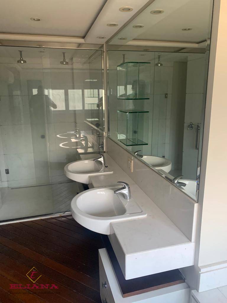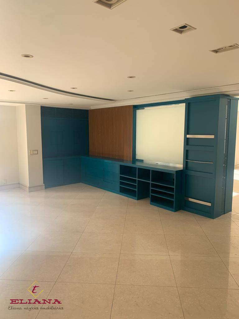 São dois apartamentos unificados no Condominio Spazio Dell Acqua. São 7 dormitórios sendo 3 suítes (inclusive suíte máster com closet hidromassagem pra 4 pessoas), ar condicionado inclusive no banheiro master), lavabo em calacata, living amplo para 6 ambientes, sala de televisão, cozinha, área de serviço, quarto e banheiro de serviço, hall privativo, 6 vagas de garagem e 2 depósitos. O imóvel possui armários em todos os dormitórios, cozinha e área de serviço. Para quem gosta de conforto, praticidade e segurança, esta é uma excelente oportunidade!